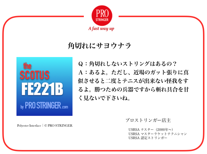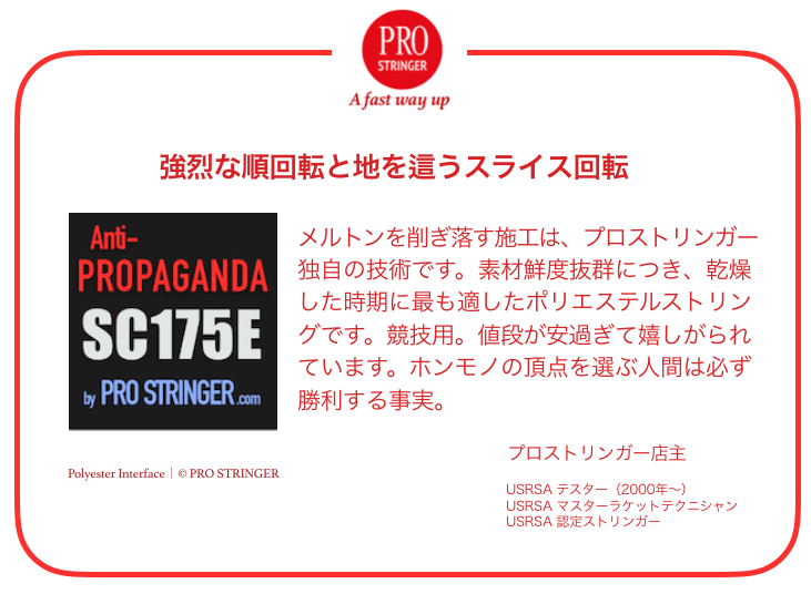 ■先進技能 よりスピン、より快適。 ストリングの買い物は施工で決まる。ストリングの銘柄を選べば、誰でも同じ結果が出るとは行かない。